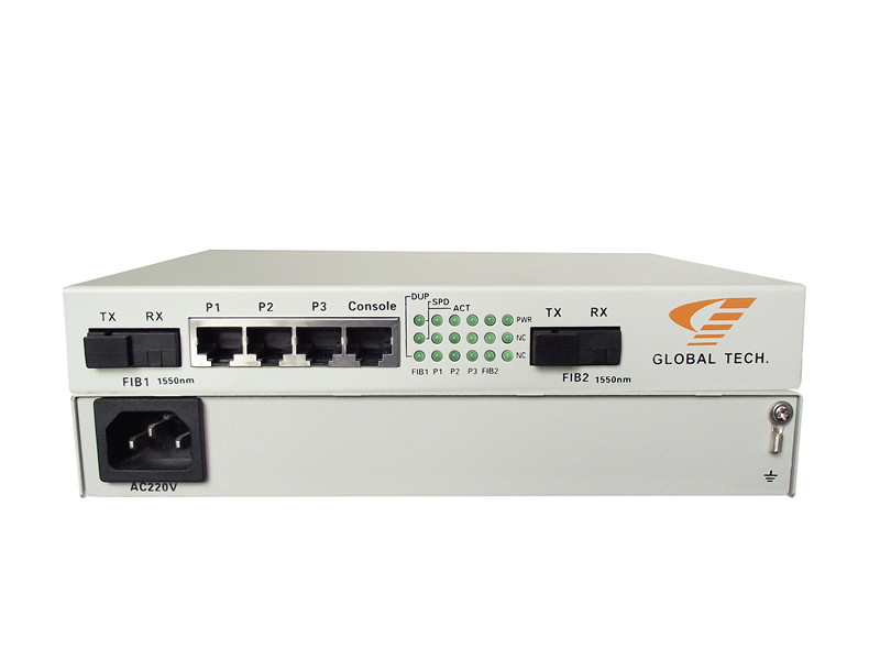 l 双光口支持保护倒换,对光纤链路起备份保护作用,若有一光纤链路出现故障,可自动切换到另一光纤链路,保护倒换时间≤30ms。